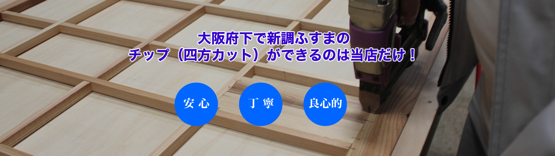 最短朝オーダーで夕方仕上げが可能です。安心・丁寧・良心的を常に心がけています。 大阪府堺市の堺ふすまセンターは襖におけるチップ(四方カット)からの製作が可能です。 大阪府だけでなく、奈良県、京都府、兵庫県、滋賀県、和歌山県、三重県を対応エリアとしています。 大工さん、工務店様、不動産関係者様向けにふすまの新調をご提案させていただきます。 勿論、チップ(四方カット)だけのお問合せも受け付けております。 大阪府下は即日納品15時完成! 詳細はこちら チップ(四方カット)が可能 ご相談ください! 詳細はこちら 低価格押入ふすま1枚6,380円(税込) 詳細はこちら お知らせ 一覧をみる